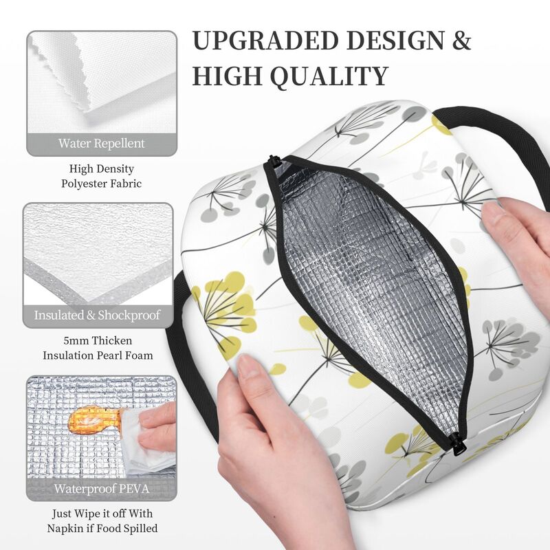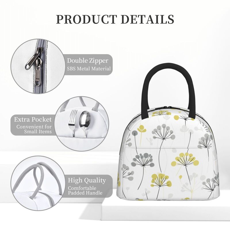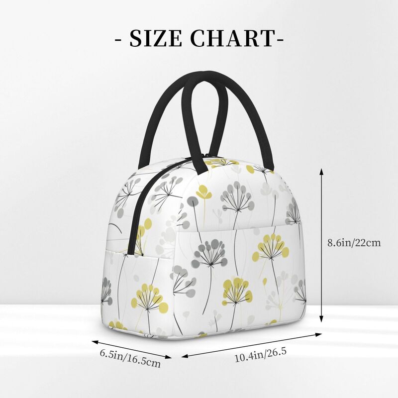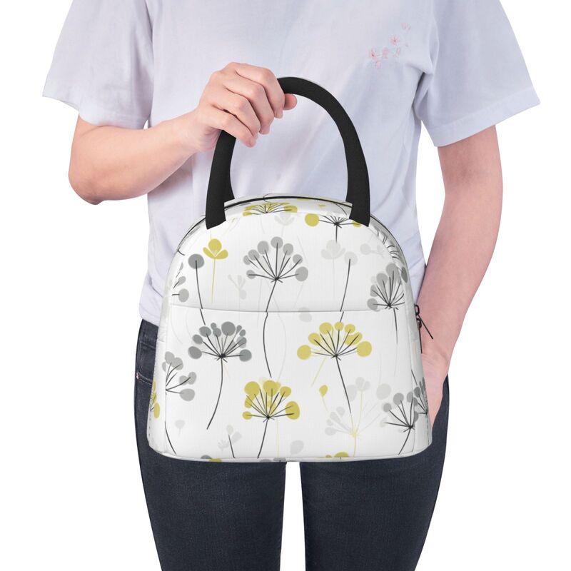 Huglittle Elegant Wallpaper-Inspired Lunchbag, Soft Yellow & White Dill Flower Design