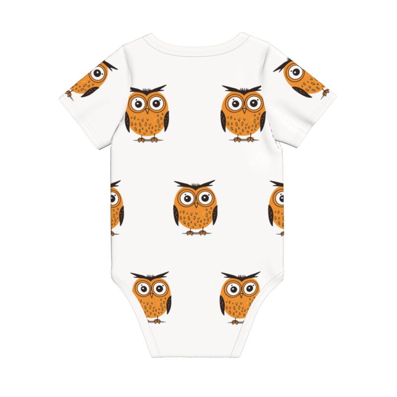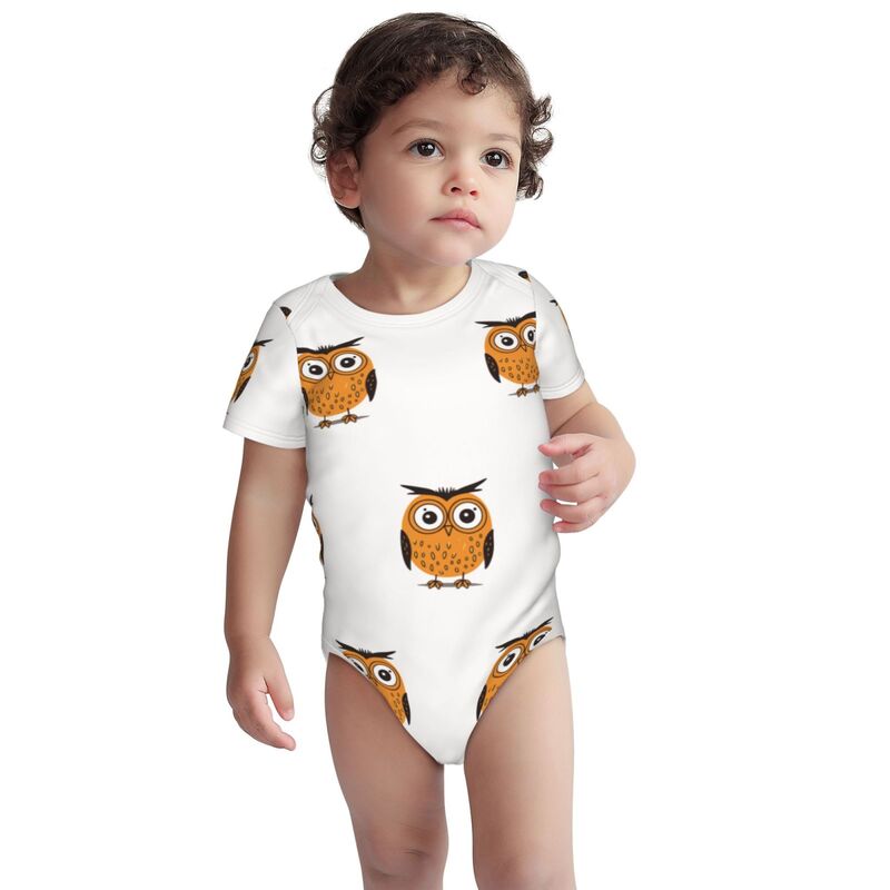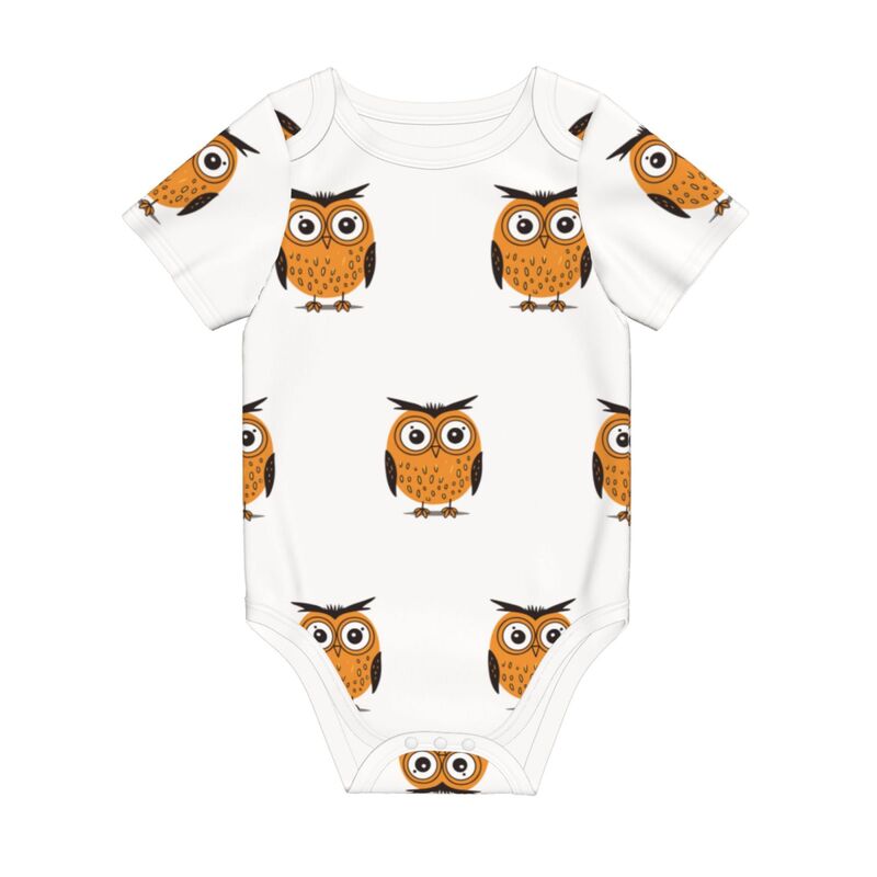 Embrace the essence of childhood wonder with our enchanting owl illustration, where simplicity meets imagination. Perched gracefully against a deep black canvas, this delightful orange owl captivates with its oversized eyes and playful demeanor. Rendered in a palette of warm amber and soothing beige, the illustration exudes a sense of comfort and whimsy.