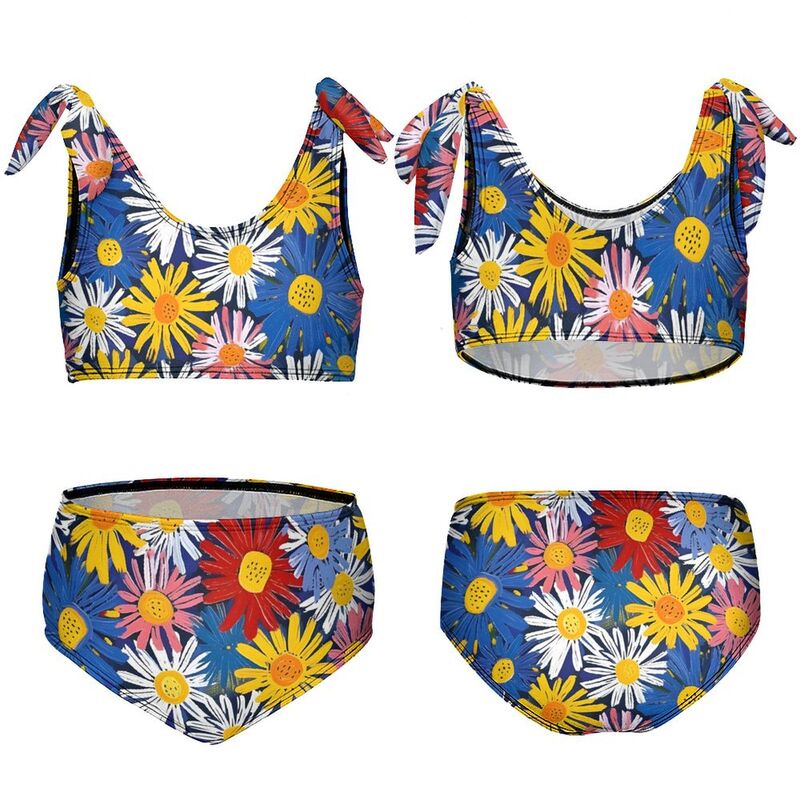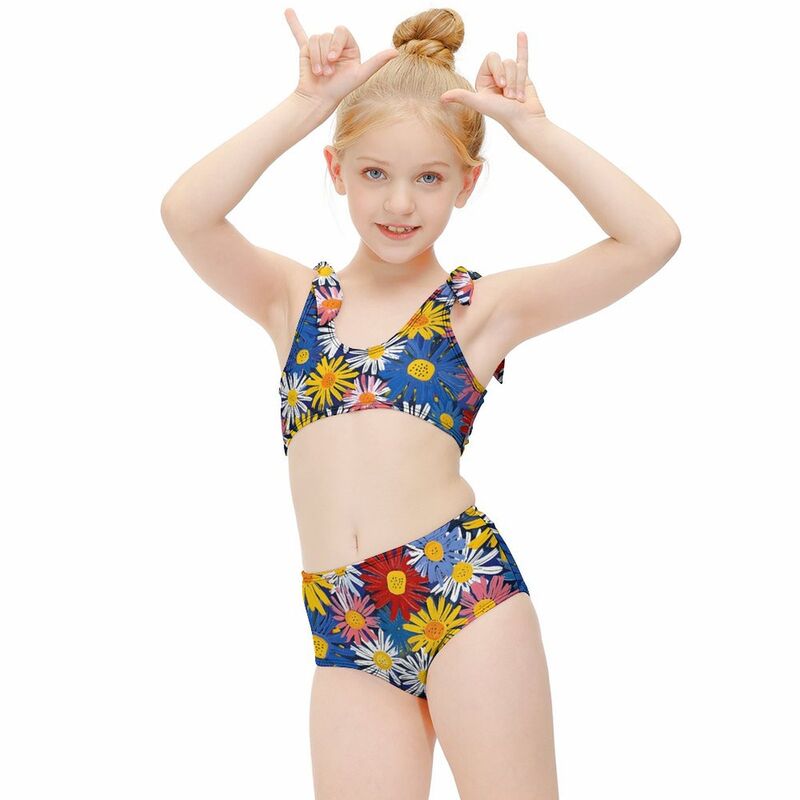 HugLittle Floral Artwork Children's Strappy Swimsuit - Vibrant, Creative & Expressive Design