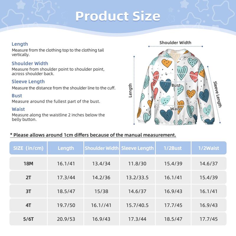 Huglittle Kids Sun Protection Hoodie with Colorful Heart Pattern Design