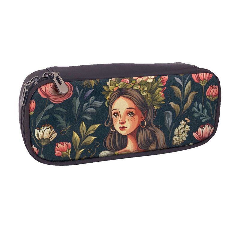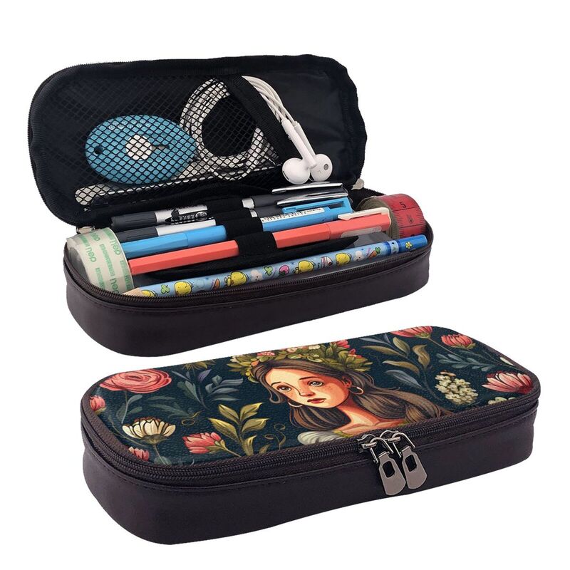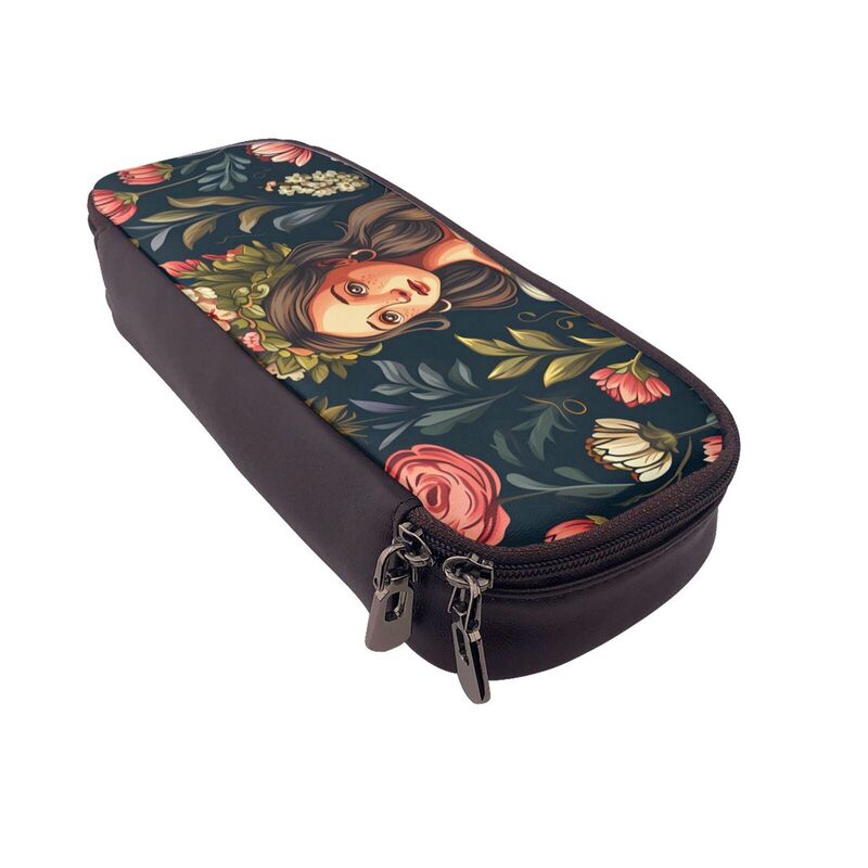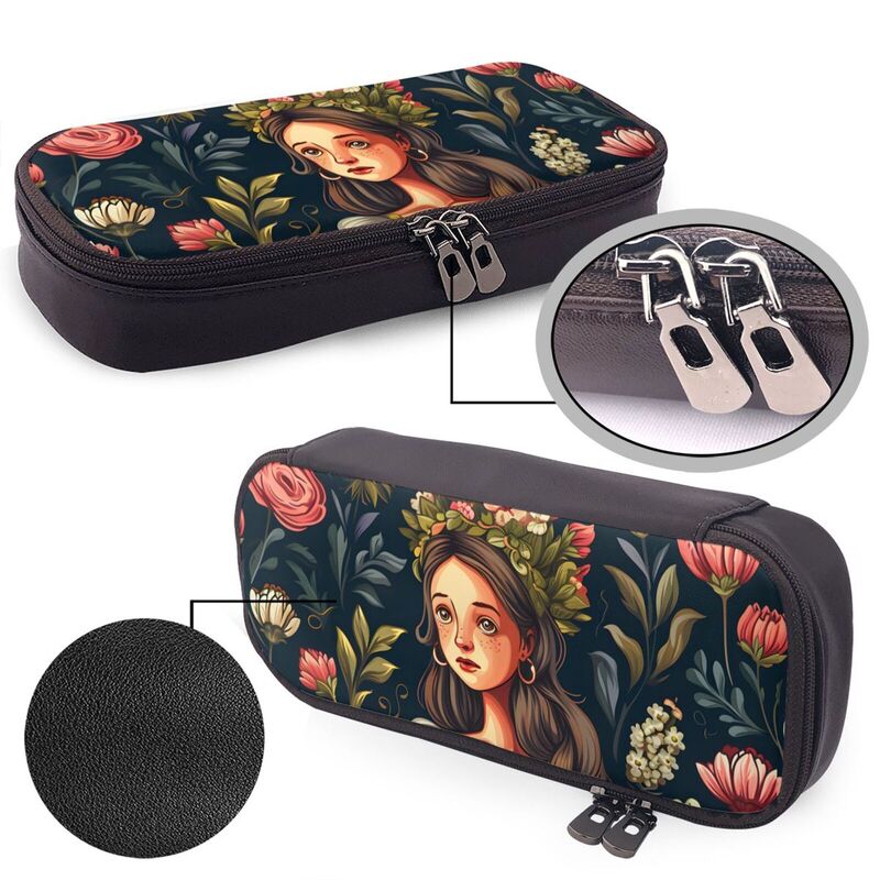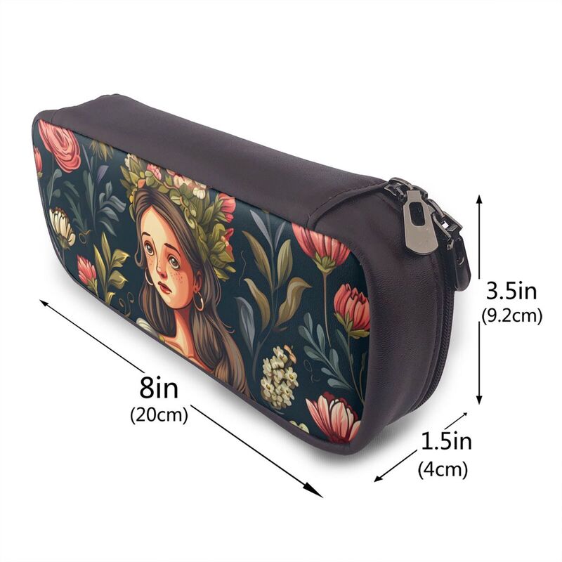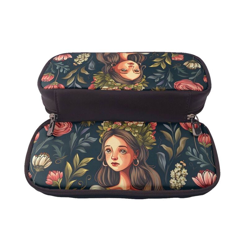 HugLittle Renaissance Inspired Floral Girl Leather Pencil Case - A Journey into Artistic Realism