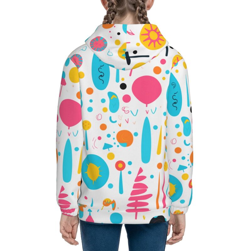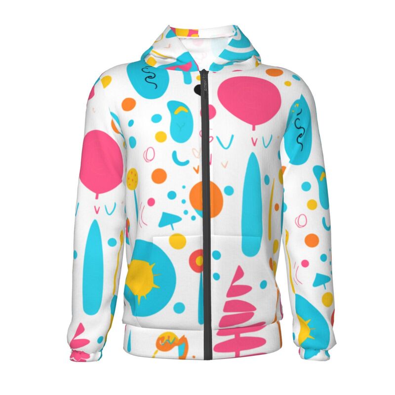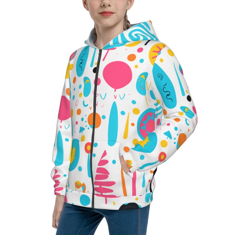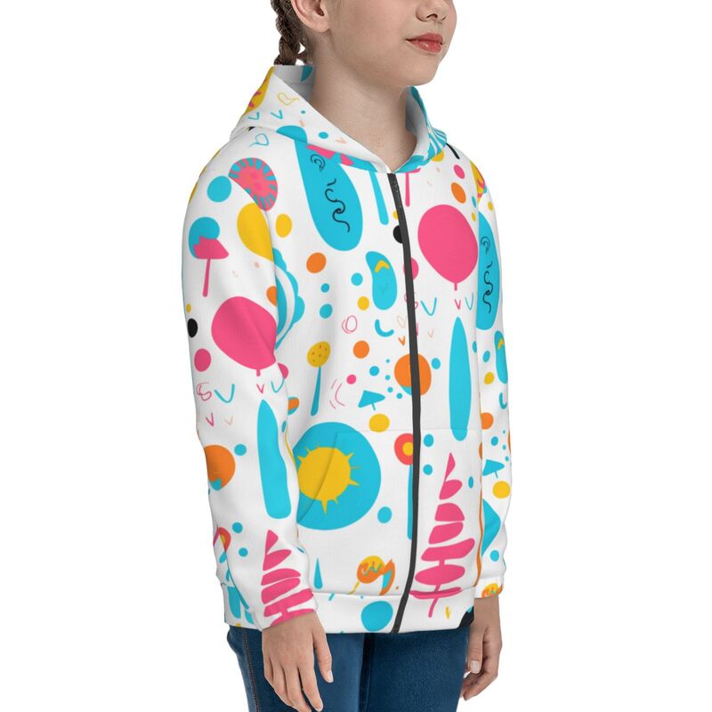 Huglittle Teenage Zipper Hoodie - Abstract Playful Design with Nature-Inspired Illustrations