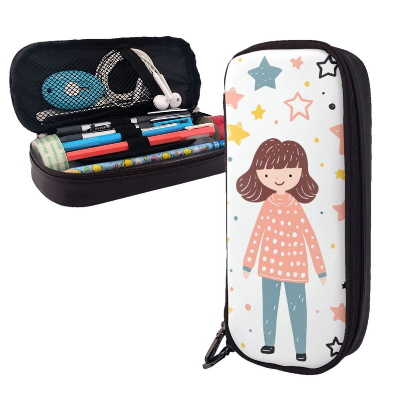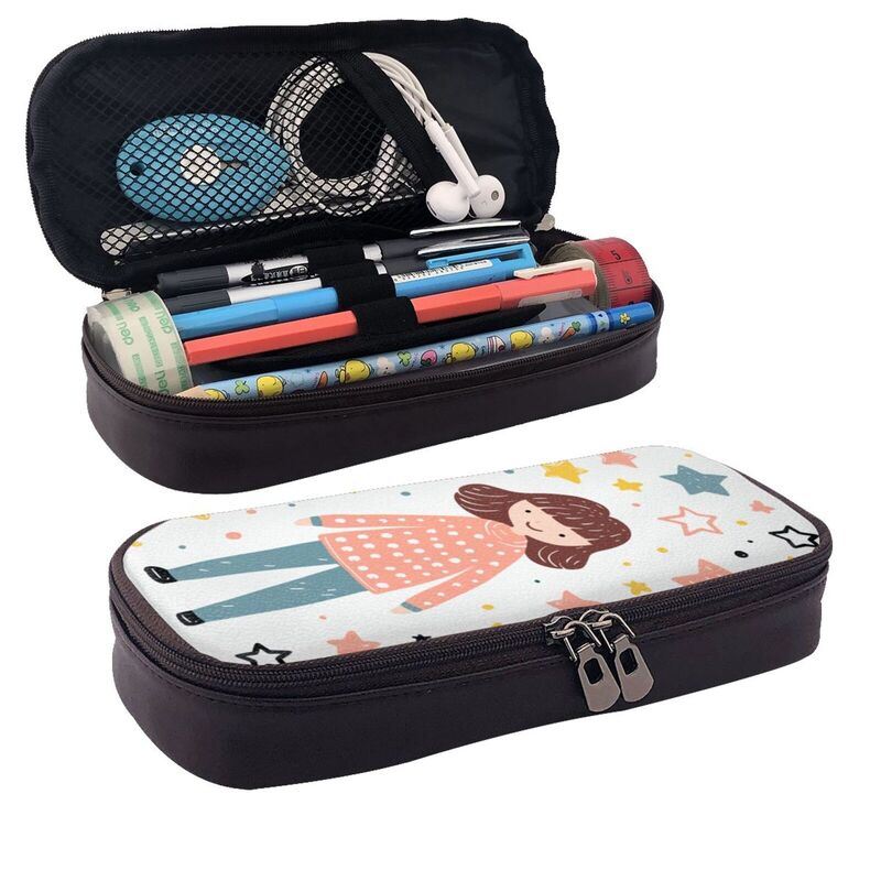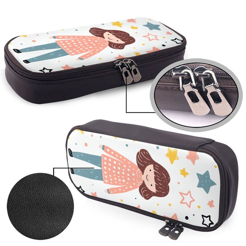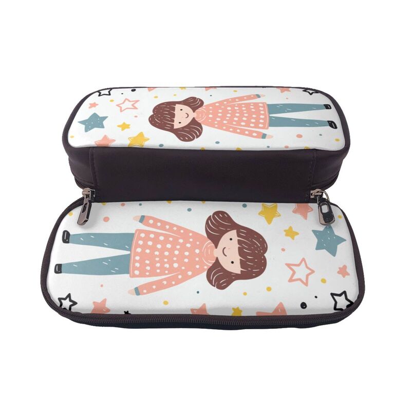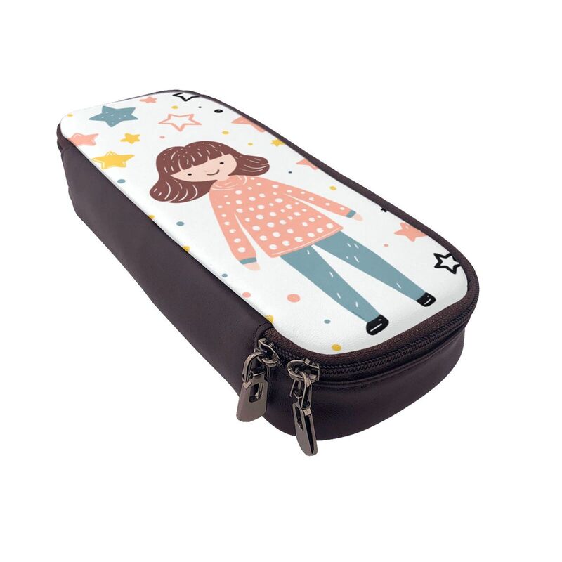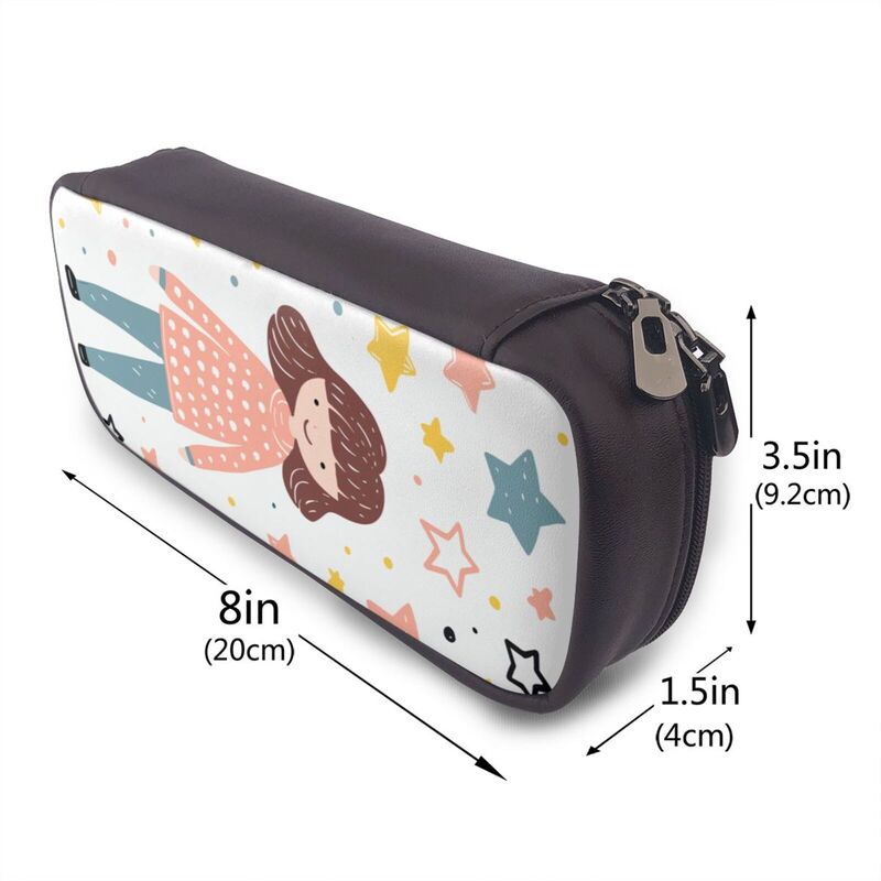 Huglittle Whimsical Adventure Leather Pencil Case with Charming Cartoon Girl Design