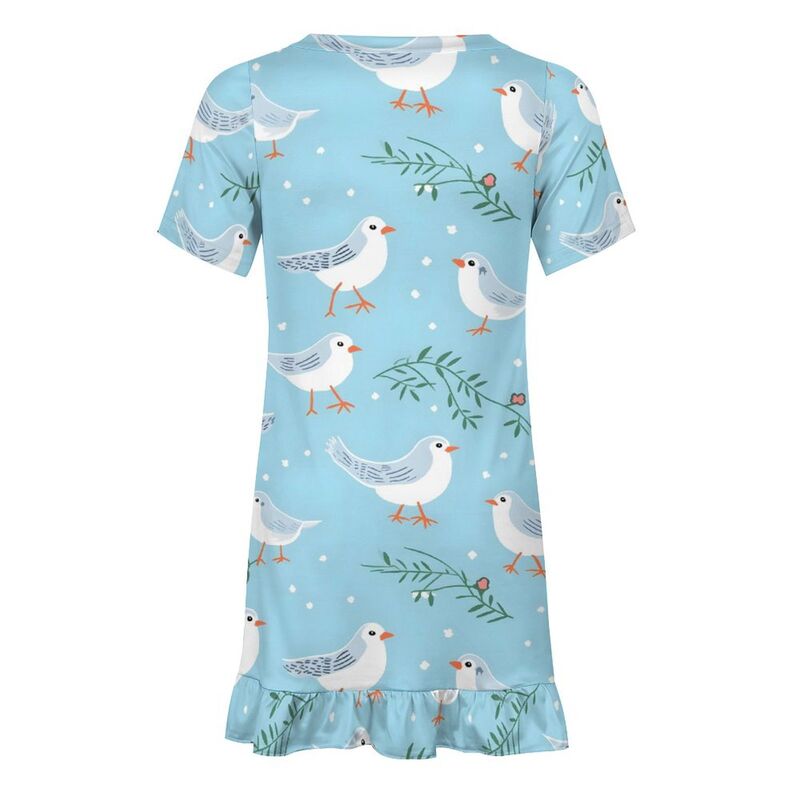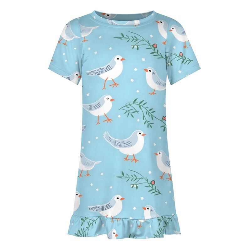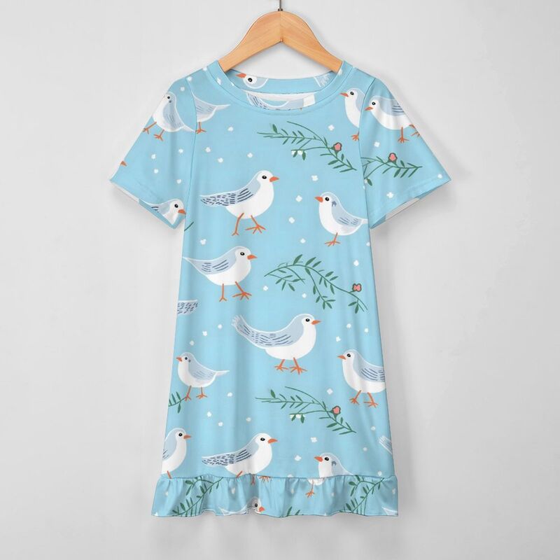 Huglittle Winter Bird-Themed Children's Short Sleeved Dress - Playful & Nature-Inspired